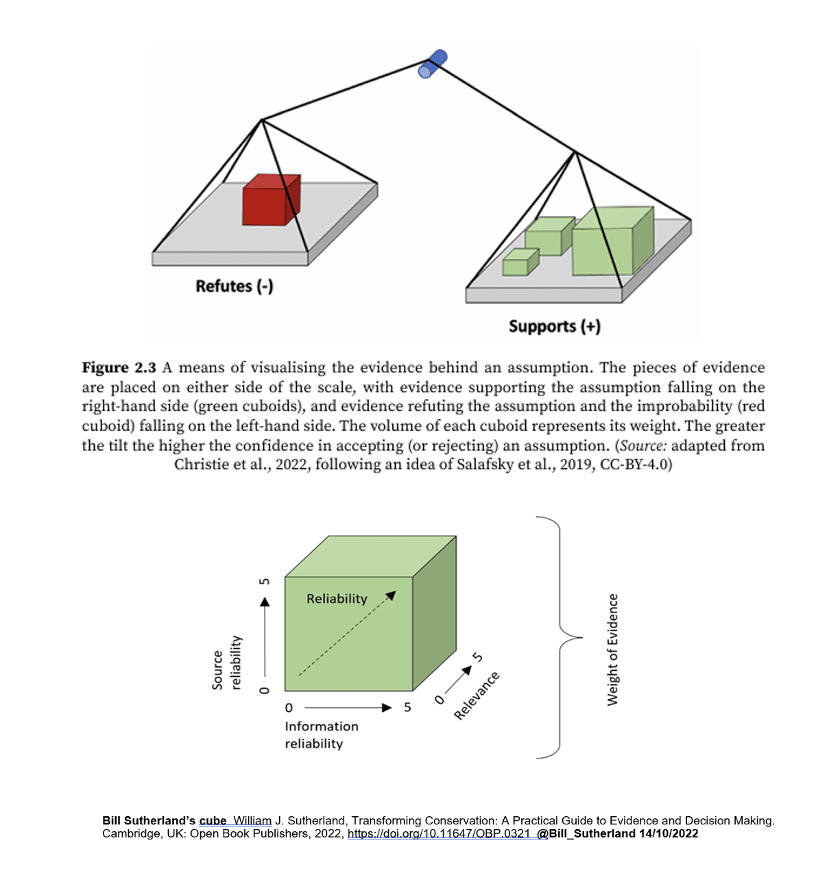 Evidence is ‘relevant information used to assess one or more assumptions related to a question of interest’. The Weight of Evidence approach (also referred to as Evidence Based Decision Making) is a key idea from CaSTCo. Learn more about Weight of Evidence here.
