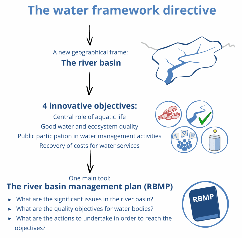 - The Water Framework Directive (WFD) protects surface waters, including rivers, lakes, transitional waters, coastal waters, and groundwater, by requiring Member States to protect and restore water bodies in order to reach ‘good status’ and prevent deterioration.