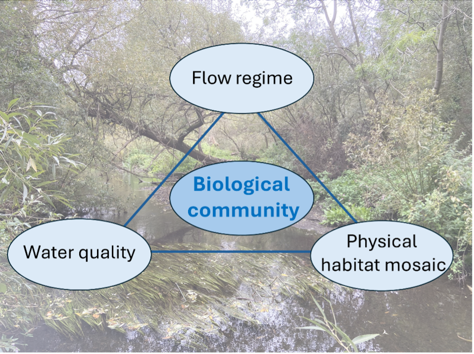 Physical habitat, water flow and water quality are the key local environmental controls on the biological community in a river. Monitoring of these three components provides insights into how the river environment changes at a site and between sites along a river. This monitoring also helps to explain why changes are observed in the biological community.