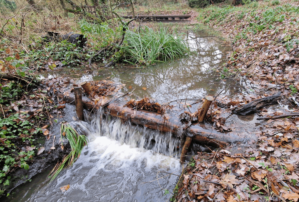 The Trust are installing leaky barriers to help attenuate high flows and thus reduce downstream flood risks. However, by attenuating high flows, these structures moderate a key process, flow, that shapes the physical size and structure of the river channel.