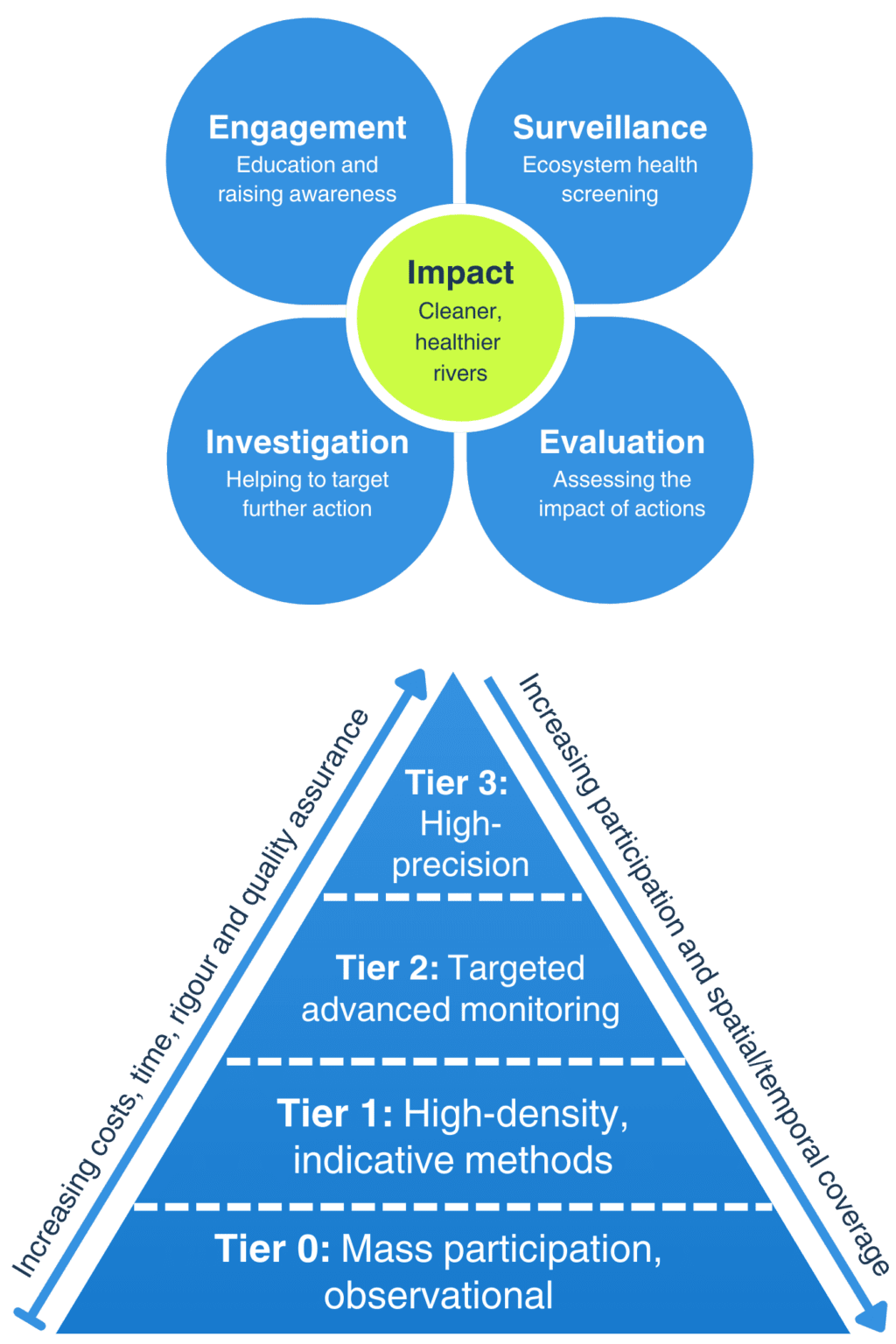 Each survey also collects observational assessment data on river characteristics and ecosystems, pollution indicators and wildlife observations. Our data is open-access and available at: